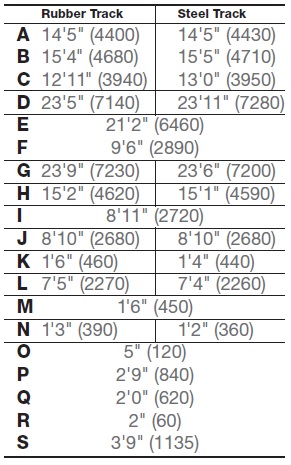 Largeur des godets : 36” à dents , 54” à fossé